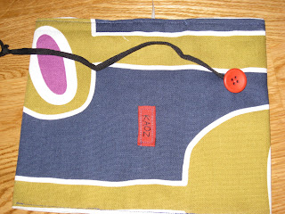 Etter å ha sett mange varianter av trekantpungen, måtte jeg lage min egen:) Denne er også stor, og fungerer som en liten sminkeveske. Den er sydd av et kraftig rødt stoff fra en lokal sybutikk, og er foret med et gardinstoff fra interiørland. Knappene er fra knappeboksen.